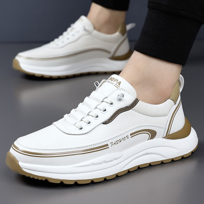 轻便软白底男鞋春季新款休闲鞋子男士板鞋厚底皮鞋真皮软皮小白鞋