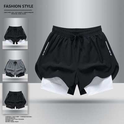 夏季新款男士速干运动短裤篮球马拉松跑步休闲裤子男假两件防走光