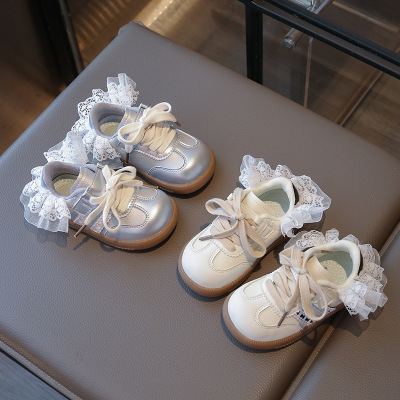 秋季新款童鞋小女孩甜美蕾丝边运动休闲鞋韩版宝宝女童德训鞋