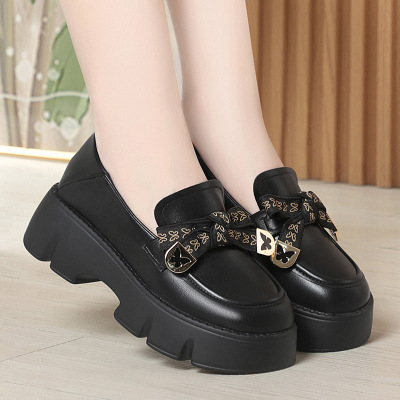新款小皮鞋乐福鞋纯色时尚休闲女鞋增高厚底