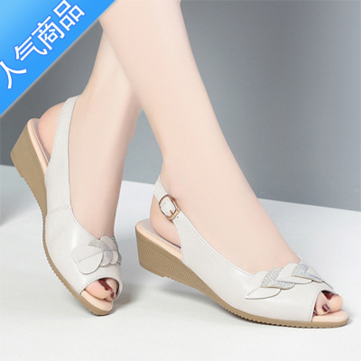 SUNTEK2023新款坡跟凉鞋女夏季中跟时尚鱼嘴妈妈鞋防滑牛筋软底女鞋