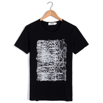 VaLS 男装时尚烟雾烫印字母印花圆领短袖T恤010300033(黑色/XL)