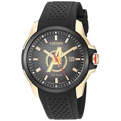 黑色硅胶带男士石英腕表光动能驱动防水米时尚潮流设计