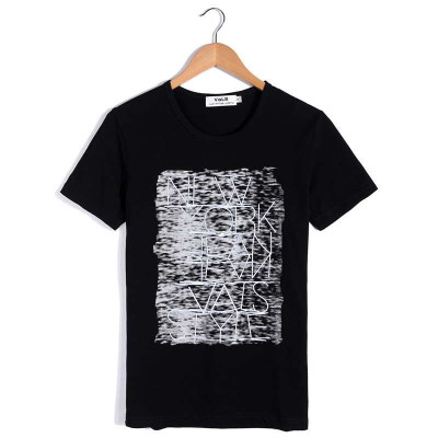VaLS 男装时尚烟雾烫印字母印花圆领短袖T恤010300033(黑色/XXL)