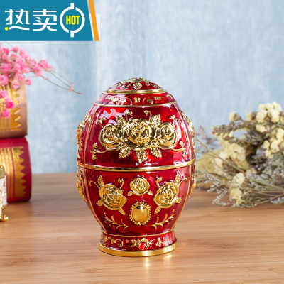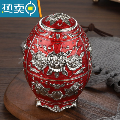 敬平欧式牙签盒客厅时尚茶几自动手按牙签筒创意时尚复古摆件牙签罐 有脚红底银玫瑰