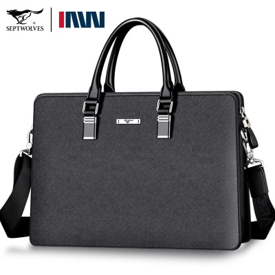 七匹狼 男包男士商务公文包大容量手提包 1A3452133-01(黑色)