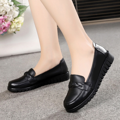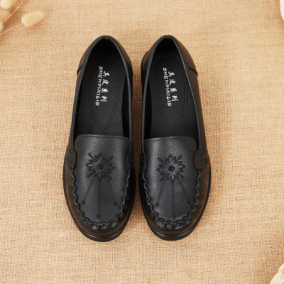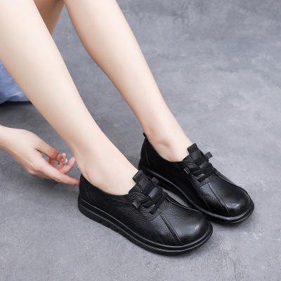 热卖牛皮女鞋圆头平底软底妈妈女鞋中老年女单鞋