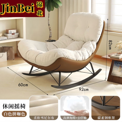 锦北单人摇摇椅懒人沙发可躺可睡摇椅客厅阳台躺椅[米白色]棕色底座