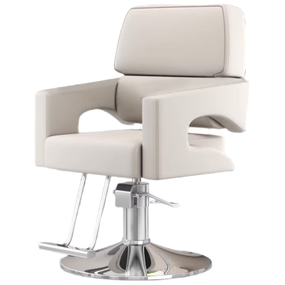锦北理发椅美发凳发廊专用升降可放倒剪发椅 简约米白色上座-银色圆盘