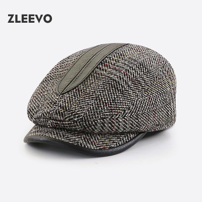 / 拼接复古报童帽男女秋冬时尚鸭舌前进帽户外画家帽