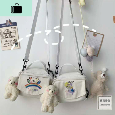 韩国ins古着感可爱小熊少女帆布小方包日系原宿学生百搭斜挎包女NEW LAKE女斜挎包