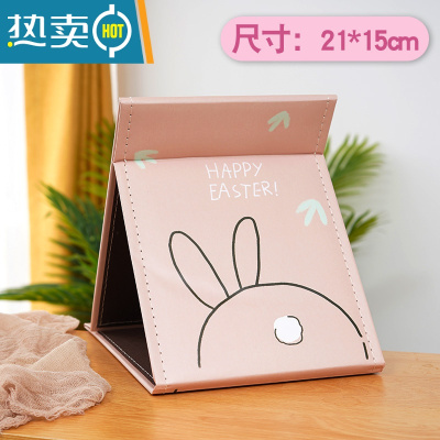 敬平镜子台式折叠化妆镜 大号梳妆镜学生宿舍 便携可爱纸镜随身 大号加厚款 兔子 送口袋镜便携式用镜