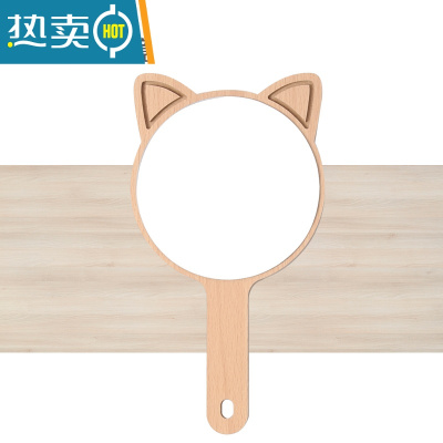 敬平便携化妆镜高清梳妆镜学生宿舍桌面折叠公主镜网红简约悬挂镜子 高清猫咪手持木镜便携式用镜