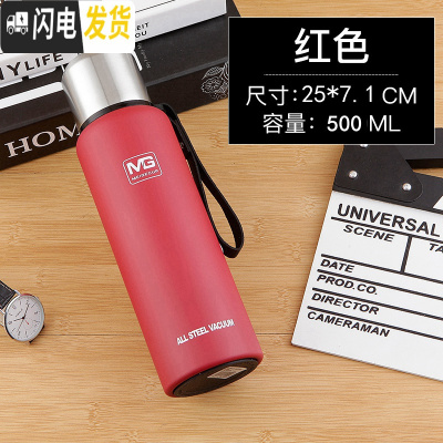 三维工匠全钢户外运动水壶骑行水杯304不锈钢保冷保温旅行杯子便携泡茶杯 红色500+杯刷+杯套保温杯
