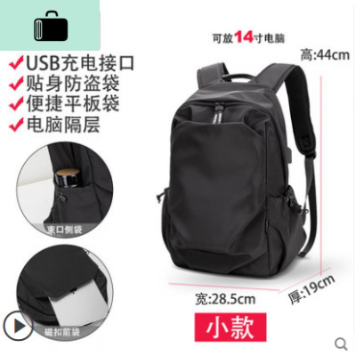 香港潮牌运动休闲双肩包男时尚潮流简约电脑背包轻便旅行书包帆布NEW LAKE 小款炫酷黑