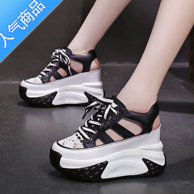 SUNTEK包头镂空凉鞋女2023夏季新款厚底内增高网红超火运动坡跟罗马女鞋