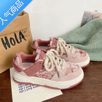 SUNTEK粉红色油画板鞋女春夏新款小众设计ins潮复古学生chic运动小白鞋