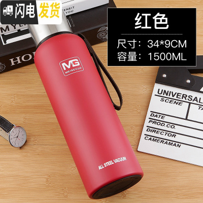三维工匠全钢户外运动水壶骑行水杯304不锈钢保冷保温旅行杯子便携泡茶杯 红色1500送杯刷+杯套保温杯