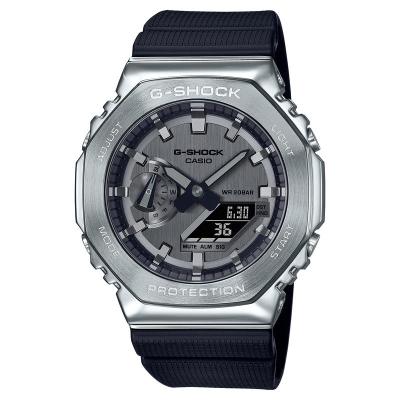 卡西欧(CASIO)GSHOCK男款银色金属表圈黑色表带石英防水耐用运动手表