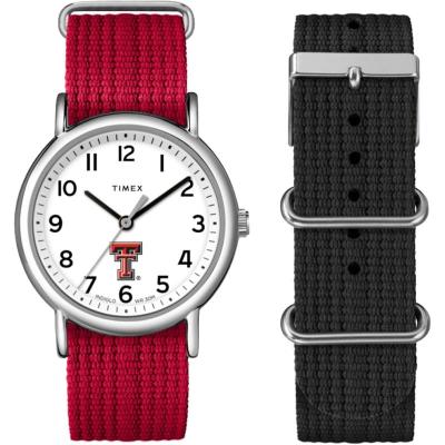 Timex /天美时女士多功能尼龙表带石英防水运动腕表红白配色