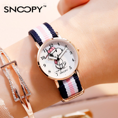 史努比(snoopy)儿童手表女学生初高中女生复古帆布编织纹带卡通可爱ins风小众设计韩版时尚小巧精致石英表