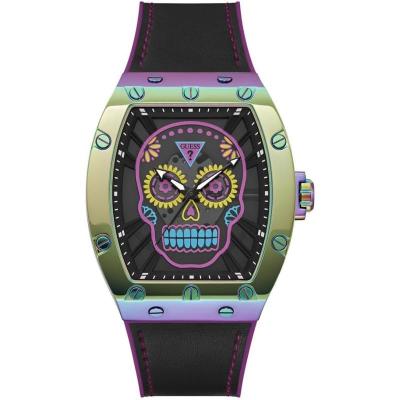GUESS 男士手表 彩色酒桶盘 镂空霓虹骷髅头潮流时尚个性防水石英表