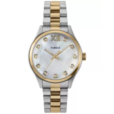 Timex 女士两 tone 不锈钢母贝镶钻防水腕表日常通勤商务石英手表