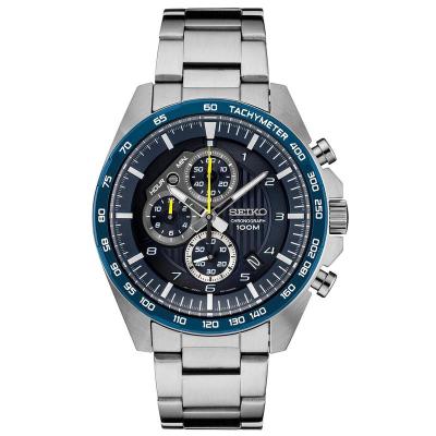 SEIKO男款三眼石英计时不锈钢腕表43.9mm防水运动商务手表