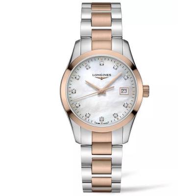 浪琴(LONGINES)女士石英表瑞士经典镶钻PVD不锈钢腕表防水商务休闲手表