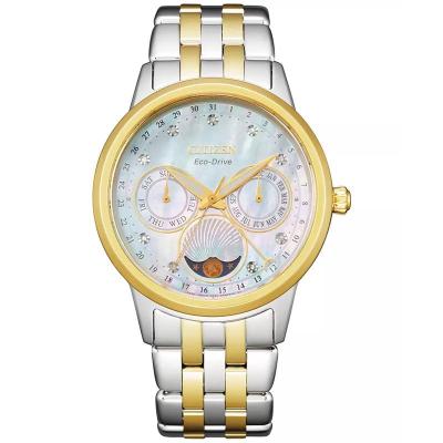 西铁城(CITIZEN)女士石英表三眼多功能月相显示 eco-drive光动能手表