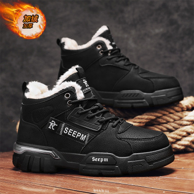 雪地靴男鞋冬季加绒加厚运动皮面防水防滑高帮工装保暖马丁靴棉鞋