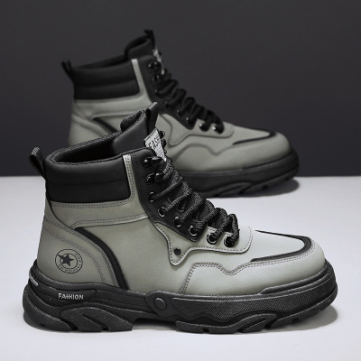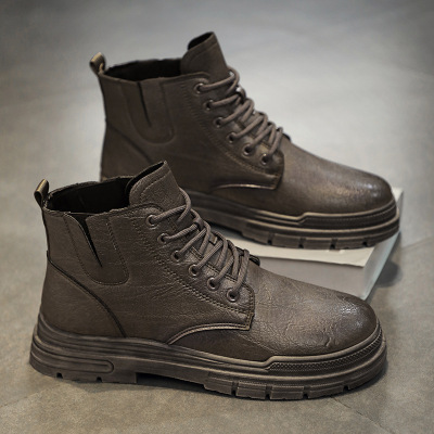 皮革透气轻便舒适轻休闲系带橡胶底靴男士秋季新款个性时尚马丁靴