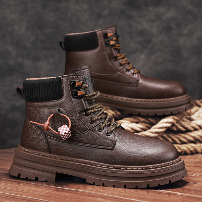 皮革透气轻便舒适轻休闲系带橡胶底靴男士秋季新款个性时尚马丁靴