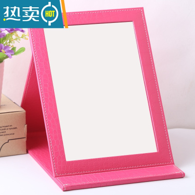 敬平韩国 精致PU皮革台式化妆镜 梳妆镜便携镜 随身折叠镜子 大号 玫红鳄大号便携式用镜
