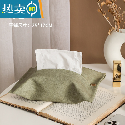 敬平皮革纸巾盒家用客厅抽纸收纳袋轻奢风创意餐巾车载餐桌ins风纸抽 橄榄绿