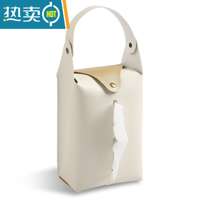 敬平MOM皮革纸巾套纯色家用车载pu抽纸盒防水简约北欧ins悬挂抽纸袋 挂绳款—金茶纸巾盒
