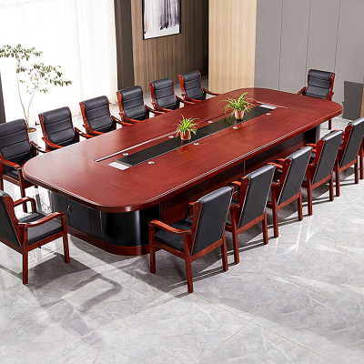 油漆会议桌贴实木皮长桌公司大型椭圆形洽谈桌椅组合