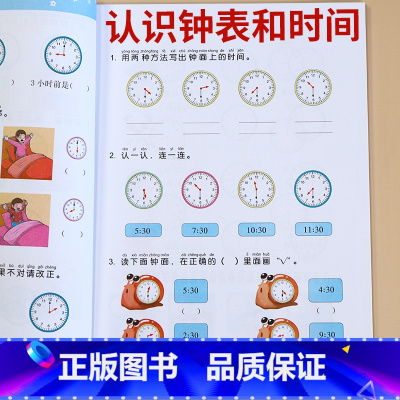 全2册-认识钟表和时间+认识位置和图形 小学一年级 [正版]认识钟表和时间时分秒位置和图形人民币换算补砖排队竖式计算数学