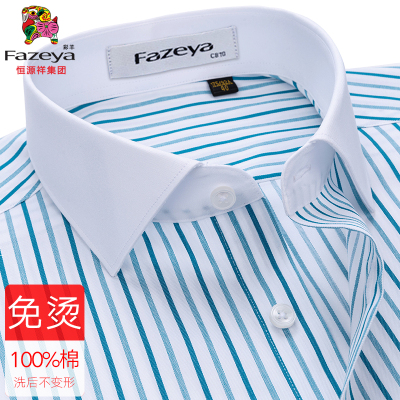 [纯棉DP免烫]恒源祥彩羊男士衬衫长袖绿色条纹休闲商务撞领衬衣