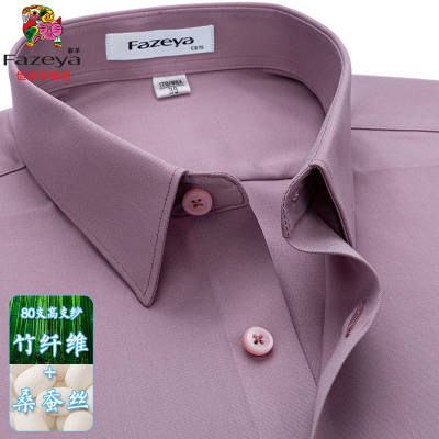 [舒弹桑蚕丝]恒源祥彩羊皮粉色男士衬衫长袖商务休闲喜公公衬衣