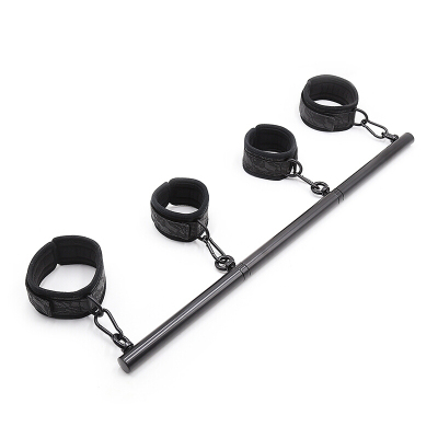 桃色缘 背手限制捆绑束缚另类调教金属钢管脚手铐 sm情趣用品男女用器具SM夫妻激情私密游戏成 带钢管不可拆卸黑色皮革脚铐
