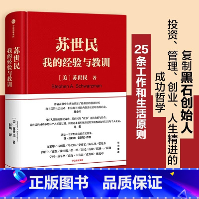 [正版]苏世民 我的经验与教训 读懂黑石创始人苏世民的投资原则 人生投资管理类成功创业的书出版社金融投资理财