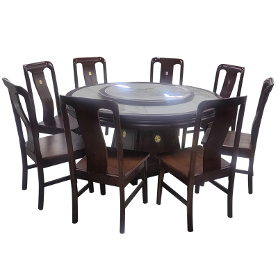 亿铁(YI TIE)中式餐桌岩板圆桌带转盘配八把椅子