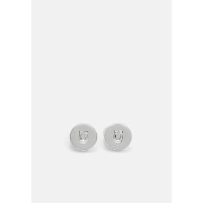 COACH女士银色 coins图案 cubic zirconia 耳钉小巧百搭日常通勤耳饰
