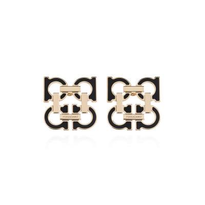 Salvatore Ferragamo黄铜搪瓷女士几何金属珐琅logo耳钉潮百搭耳饰