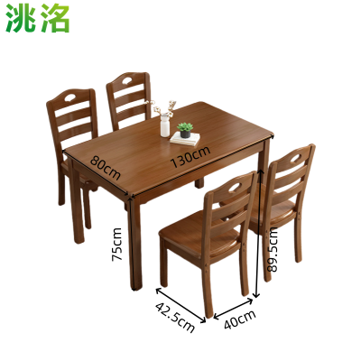 洮洺 实木餐桌椅组合 1.3m长桌+4椅 套