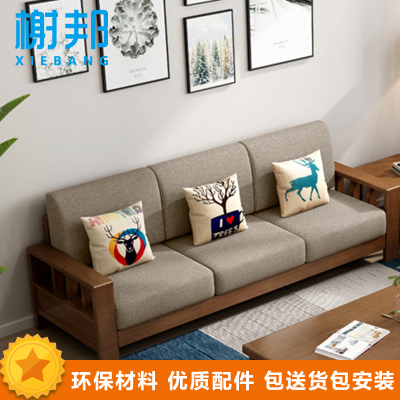 榭邦xb办公家具实木沙发三人位