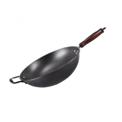 加厚老式双耳铁锅炒锅家用加深炖锅平底大不粘锅燃气炒菜锅