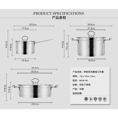 栢士德BYSTON不锈钢火锅汤锅奶锅三件套BST-046