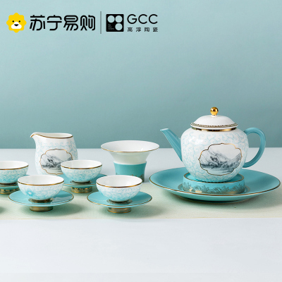 高淳陶瓷丝路小清新中式家用骨瓷茶具送礼整套茶具套装珐琅茶具礼